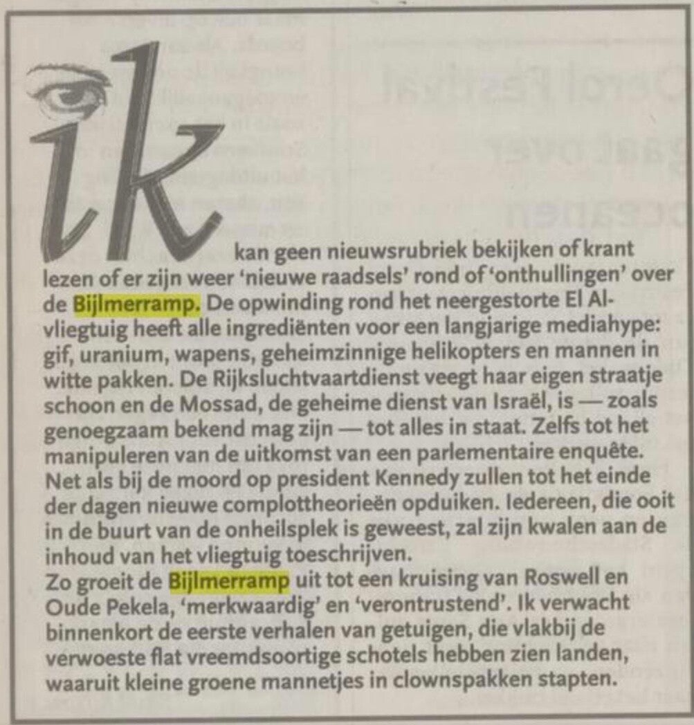 Het hoofdstuk werd geschreven na verschijning van de Youtube uitzending van PowNed in mei 2024: Complot? De genante vertoning rond de Bijlmerramp!