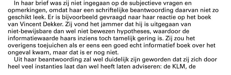 Het zou voor de heruitgave van een dergelijk belangrijk boek in 2022 van belang zijn geweest dat Dekker eens contact had gezocht met professionele ongevalsonderzoekers, captain Sully Sullenberger of andere professionals die hem misschien verder hadden kunnen helpen en van zijn confirmation bias hadden kunnen bevrijden. Het boek is onwaarachtig en onvolledig: het echte verhaal is spannend genoeg.
