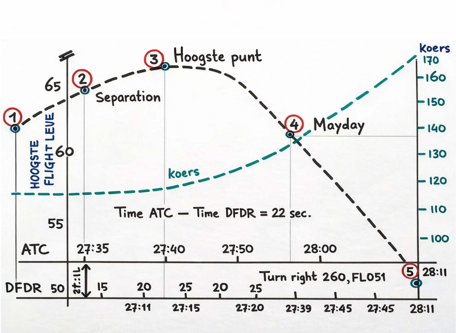 (3) 20250713 (geupdate) Analyse van de tijdsverschillen tussen DFDR en ATC-Radar en de tijd tussen engine separation en Mayday call;